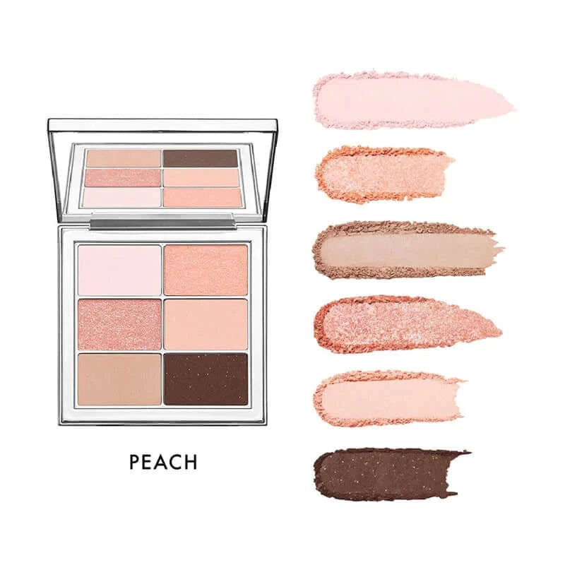 Amuse Eye Vegan Sheer Palette on kuuden neutraalin sävyn luomiväripaletti, jossa yhdistyvät ruskean ja persikan sävyt kolmeen eri viimeistelyyn – mattainen, satiininen ja hohtava.