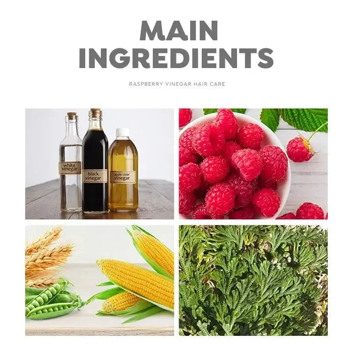 Vadelmaetikka (20 000 mg) tasapainottaa hiuspohjan kosteuden ja talintuotannon, vahvistaa hiusjuuria ja stimuloi hiusten kasvua. Vadelmauute (10 000 mg) kosteuttaa ja ravitsee hiuksia intensiivisesti, tekee niistä sileämmät ja helpommin kammattavat. Fytokeratiini vahvistaa ja korjaa vaurioituneita hiuksia, lisää elastisuutta ja kiiltoa, kun taas ruusuöljy palauttaa hiusten rakenteen ja antaa niille elinvoimaa ja pehmeyttä.