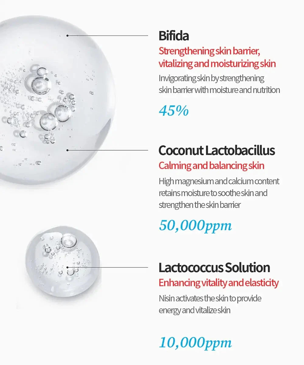 Lactococcus Ferment Lysate: sisältää probiootteja, jotka stimuloivat ihon uusiutumista ja vahvistavat ihon suojamuuria.