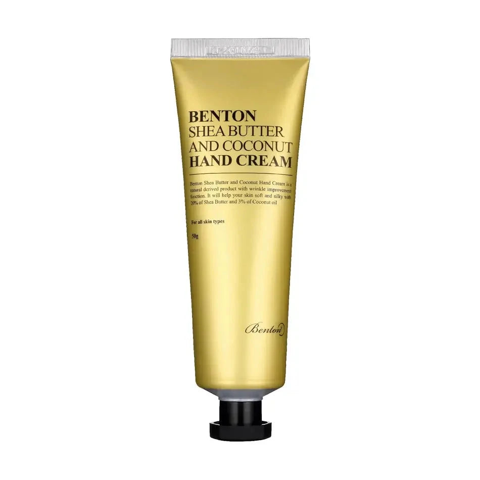 Benton Shea Butter and Coconut Hand Cream ravitsee ja hoitaa käsien ihoa. Tämä voide tarjoaa intensiivistä kosteutusta ja ravintoa, tehden käsistä pehmeät, sileät ja silkkiset ilman tahmeaa tunnetta.