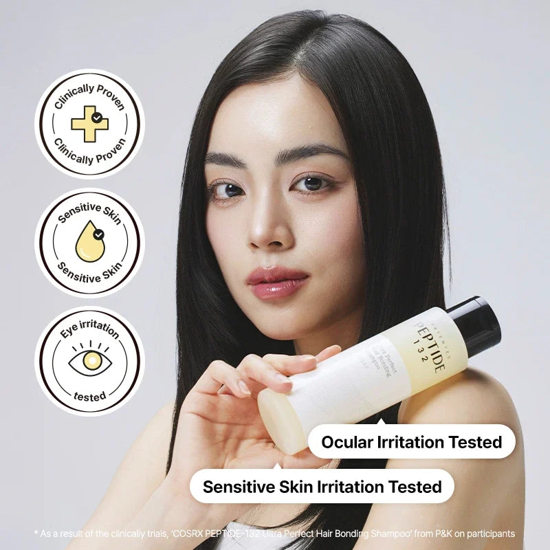 Cosrx Peptide‑132 Ultra Perfect Hair Bonding Shampoo on innovatiivinen hoitava shampoo, joka on suunniteltu vahvistamaan vaurioituneita hiuksia ja rauhoittamaan herkkää hiuspohjaa. Sen patentoitu PEPTIDE‑132™ palauttaa hiusten keratiinirakenteen juuresta latvaan, lisäten joustavuutta ja sileyttä ilman raskautta tai kuivuutta.