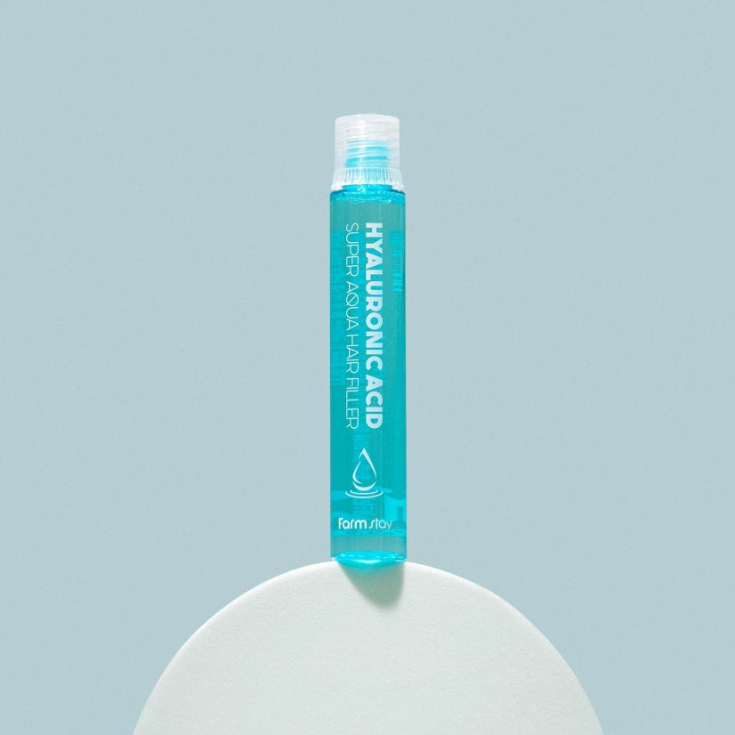 Farmstay Hyaluronic Acid Super Aqua Hair Filler — intensiivisesti hoitava täyteaine hyaluronihapolla, joka kosteuttaa, vahvistaa ja palauttaa vaurioituneet hiukset tehden niistä sileät ja kiiltävät.