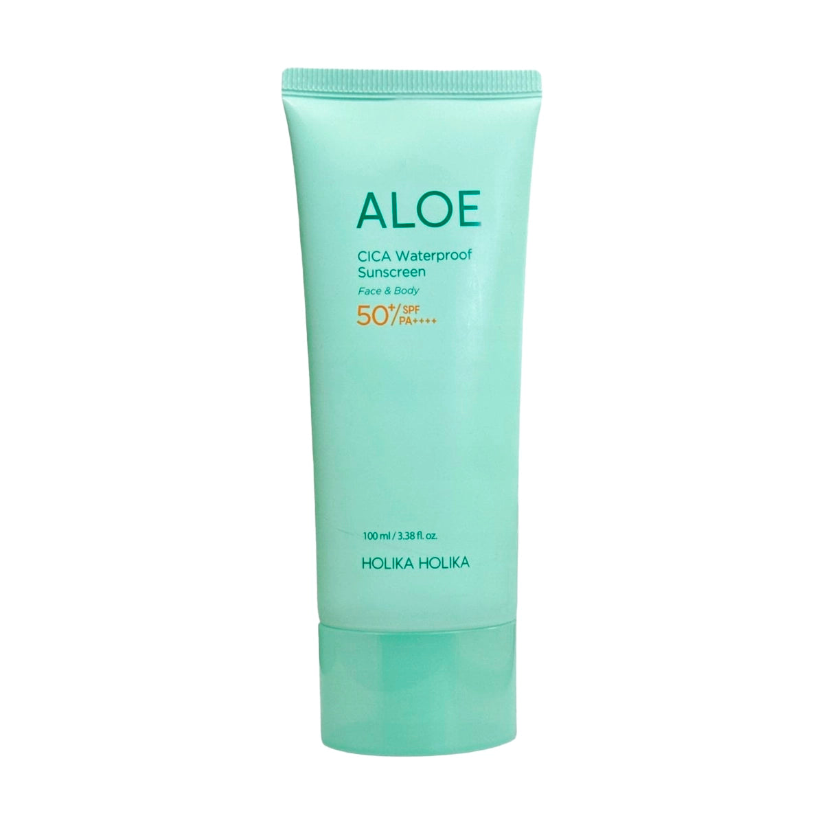 Holika Holika Aloe Cica Waterproof Sunscreen SPF50+ PA++++ — vedenkestävä kasvojen ja vartalon aurinkovoide, jossa on aloe ja CICA, jotka tarjoavat tehokkaan UVA/UVB-suojan.