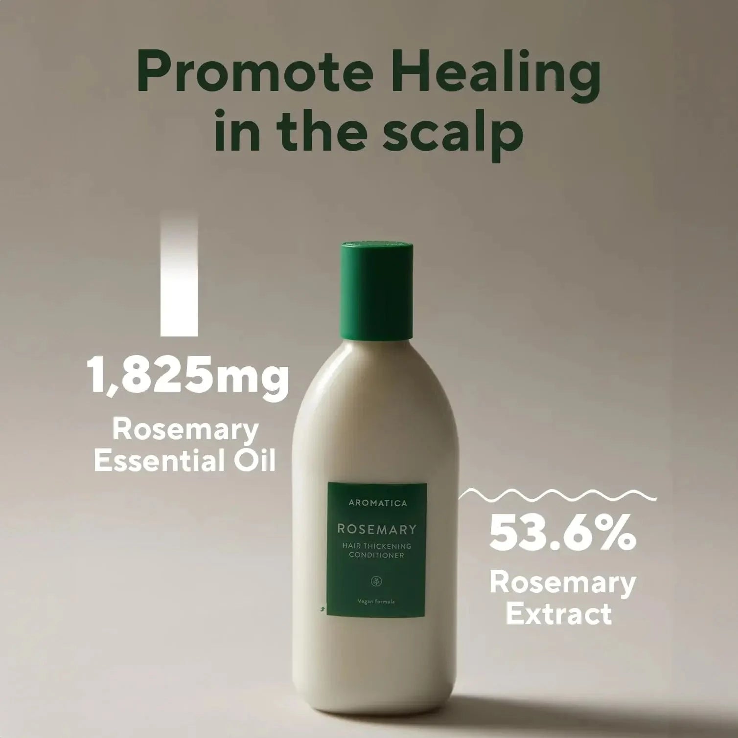 AROMATICA Rosemary Hair Thickening Conditioner on silikoniton vahvistava hoitoaine, joka puhdistaa hiukset hellävaraisesti, säilyttää raikkauden ja jättää miellyttävän havumetsän tuoksun. Hoitoaine kuorii tehokkaasti kuolleita ihosoluja, vahvistaa hiusjuuria ja suojaa hiuksia katkeilulta ja liialliselta hiustenlähdöltä.