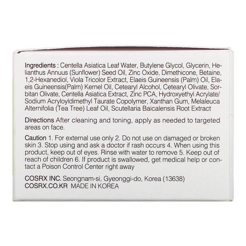 COSRX Centella Blemish Cream on tehokas voide, joka taistelee aknea ja couperosaa vastaan aktiivisten ainesosien, kuten centella asiatican, sinkkioksidin ja teepuuöljyn avulla. Tämä voide ravitsee ihoa syvältä, vähentää tulehdusta ja punoitusta sekä normalisoi talirauhasten toimintaa. Se imeytyy nopeasti eikä jätä rasvaista kiiltoa, ja sopii täydellisesti herkälle ja ongelmaiholle.