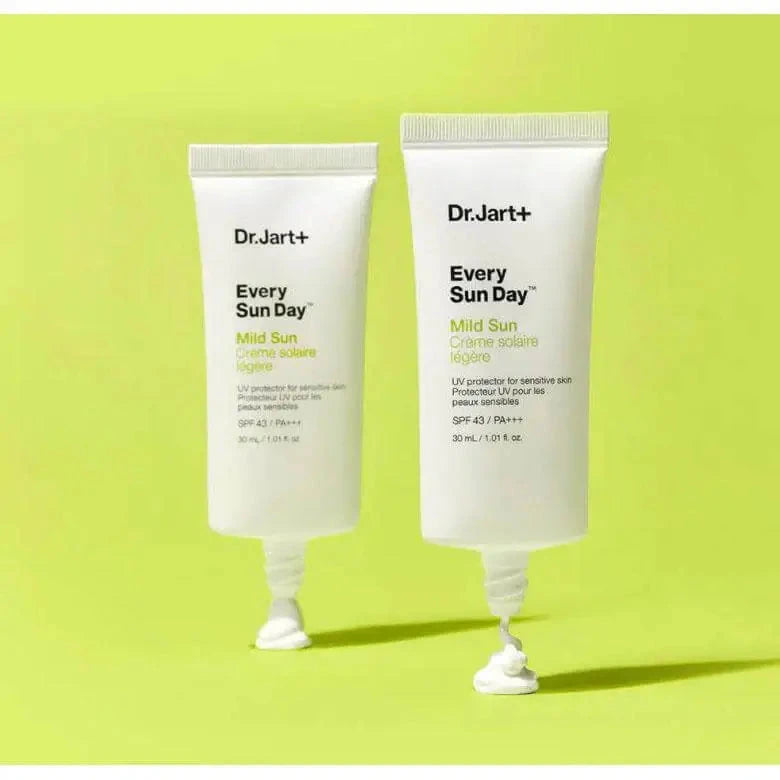 Dr. Jart+ Every Sun Day Mild Sun SPF43+/PA+++ on herkkäihoisille suunniteltu aurinkovoide, joka yhdistää fysikaaliset ja kemialliset suodattimet tarjoten luotettavan suojan kasvojen ja vartalon iholle UV-säteilyn haittavaikutuksia sekä ennenaikaista valovanhenemista vastaan.