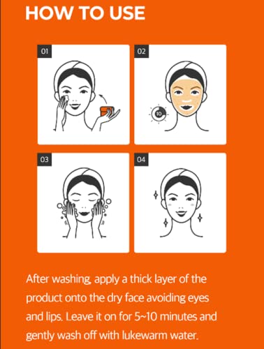 Levitä naamio paksuna kerroksena puhtaalle, kuivalle iholle välttäen silmien ja huulten aluetta. Huuhtele 5–10 minuutin kuluttua lämpimällä vedellä.