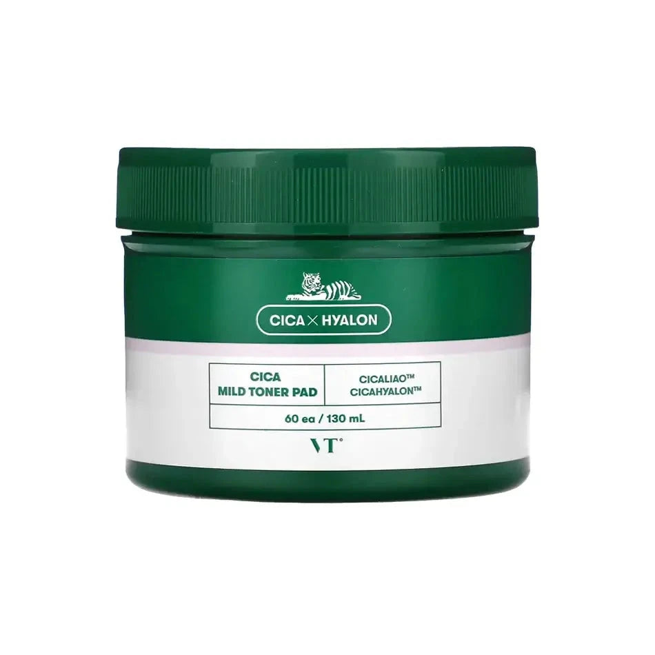 VT Cosmetics Cica Mild Toner Pad -kasvotyynyt hoitavat ihoa tehokkaasti ja rauhoittavasti, ja ne on kehitetty erityisesti herkälle iholle. Salisyylihappoa (BHA), centella asiatica -uutetta ja vihreää propolista sisältävä koostumus kuorii hellävaraisesti, puhdistaa ihohuokoset syvältä ja vähentää tulehduksia.