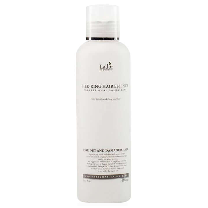 Lador Eco Silk-Ring Hair Essence on kevyt, tehokkaasti silottava esanssi, joka tekee hiuksista välittömästi pehmeät, joustavat ja kiiltävät.