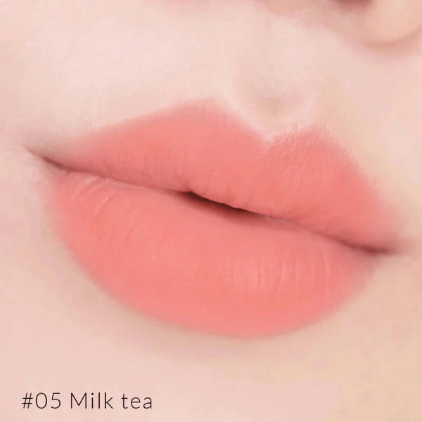 Se tuntuu kevyeltä ja samettiselta – kuin “whipped cream” – jättäen huulille luonnollisen mattapinnan ilman tahmeutta tai kiristystä.