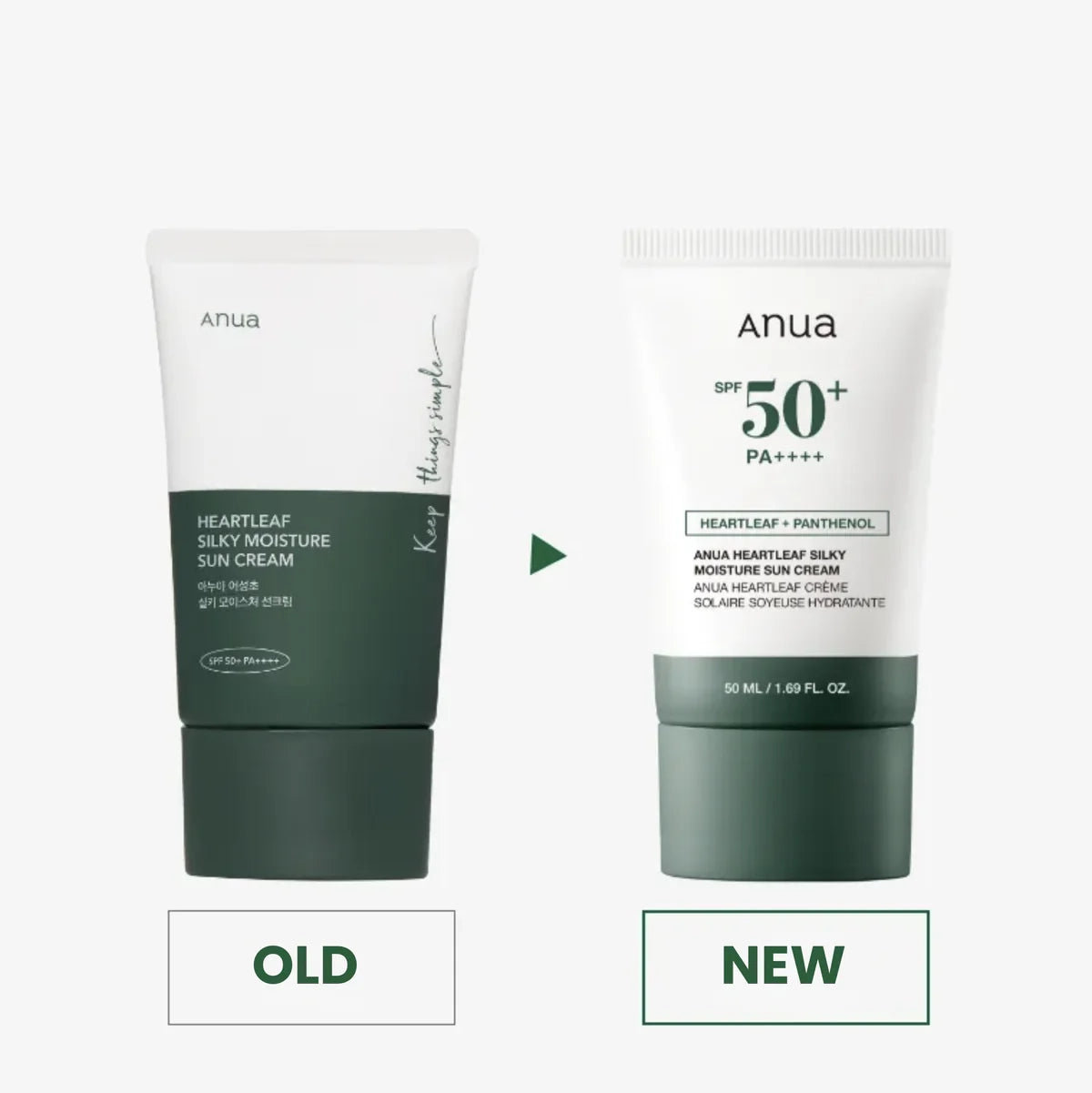 Anua Heartleaf Silky Moisture Sun Cream SPF50+ PA++++ — rauhoittava aurinkovoide, joka suojaa ihoa UV-säteilyltä, kosteuttaa ja pehmentää jättämättä valkoisia jälkiä tai rasvaista kiiltoa. Kevyt koostumus imeytyy nopeasti, vähentää punoitusta ja ärsytystä sekä toimii erinomaisena pohjana meikille.