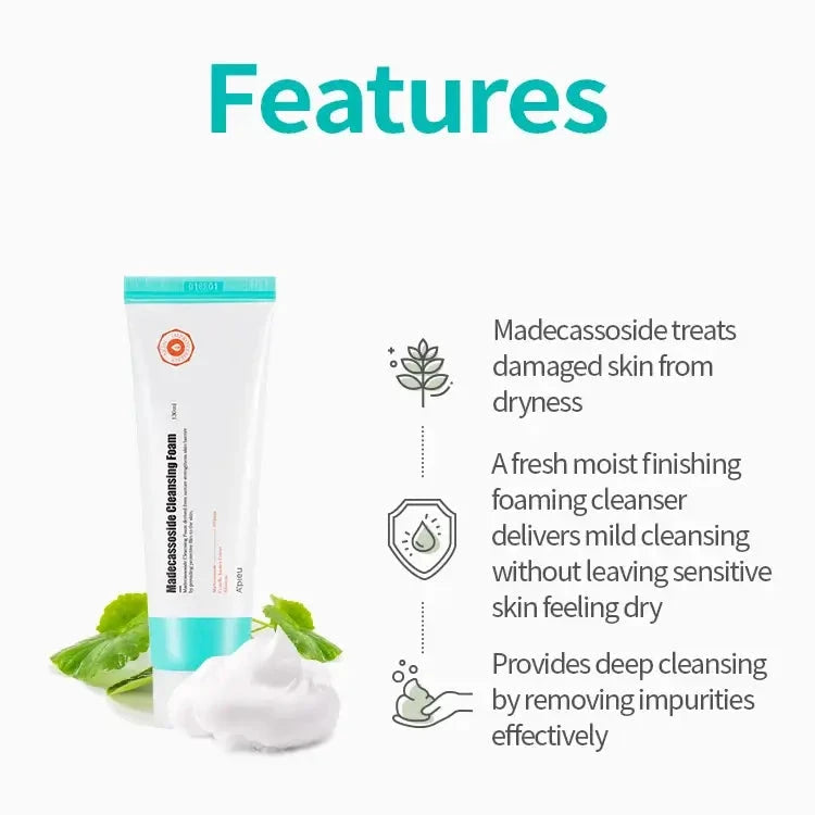 A’pieu Madecassoside Cleansing Foam on rauhoittava ja tasapainottava puhdistusvaahto, joka poistaa epäpuhtaudet ja meikin jäämät hellävaraisesti jättäen ihon raikkaaksi ja puhtaaksi.