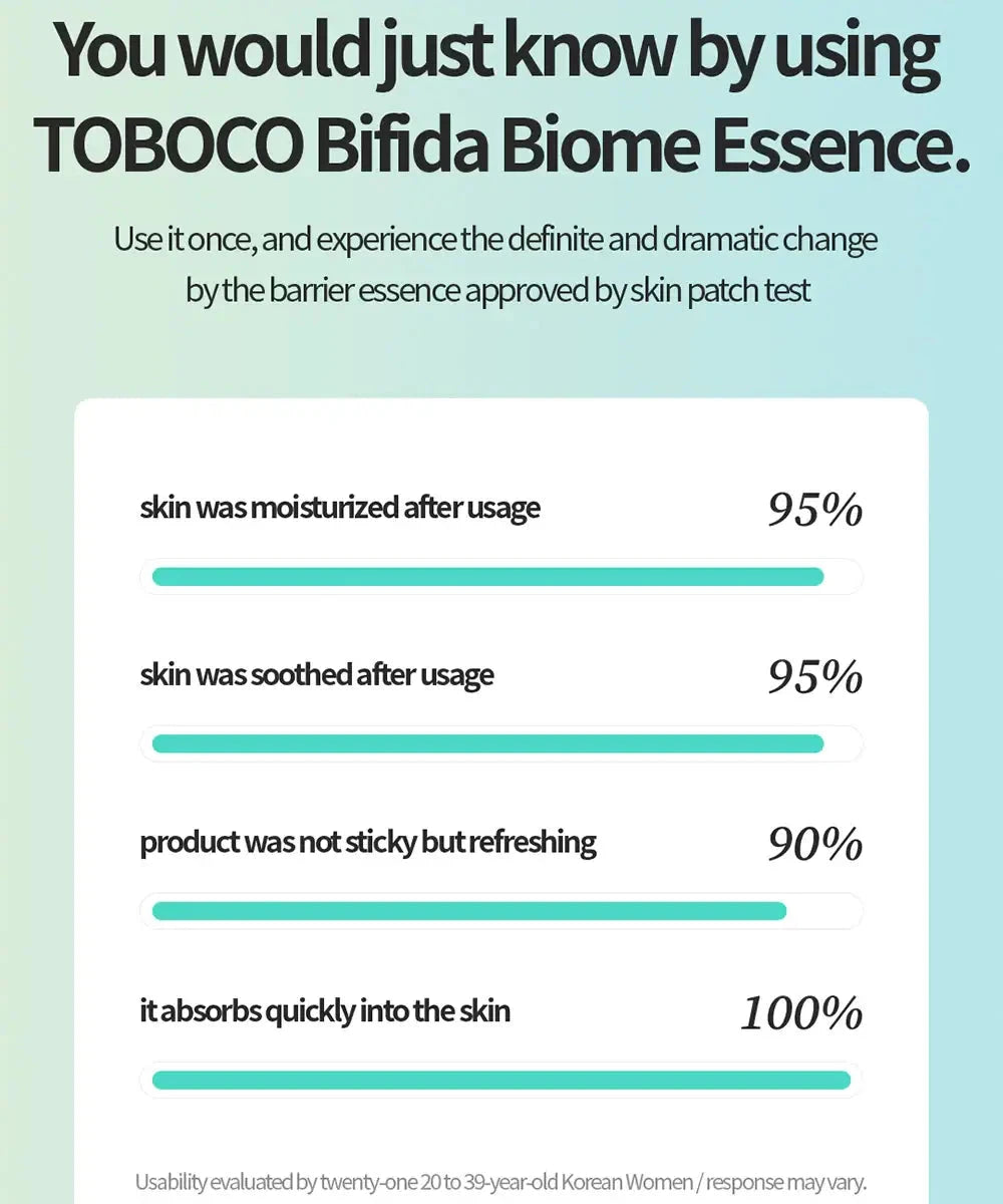 Tocobo Bifida Biome Essence — rikastettu kolmella probioottisella maitohappobakteerilla, tämä essence rauhoittaa ja elvyttää ihoa vahvistaen sen suojamuuria. Se edistää ihon optimaalista kuntoa, parantaa kimmoisuutta ja vähentää hienoja juonteita niasiiniamidin ja adenosiinin ansiosta. Essence taistelee punoitusta ja tulehduksia vastaan, antaen iholle terveen ja kauniin hehkun.
