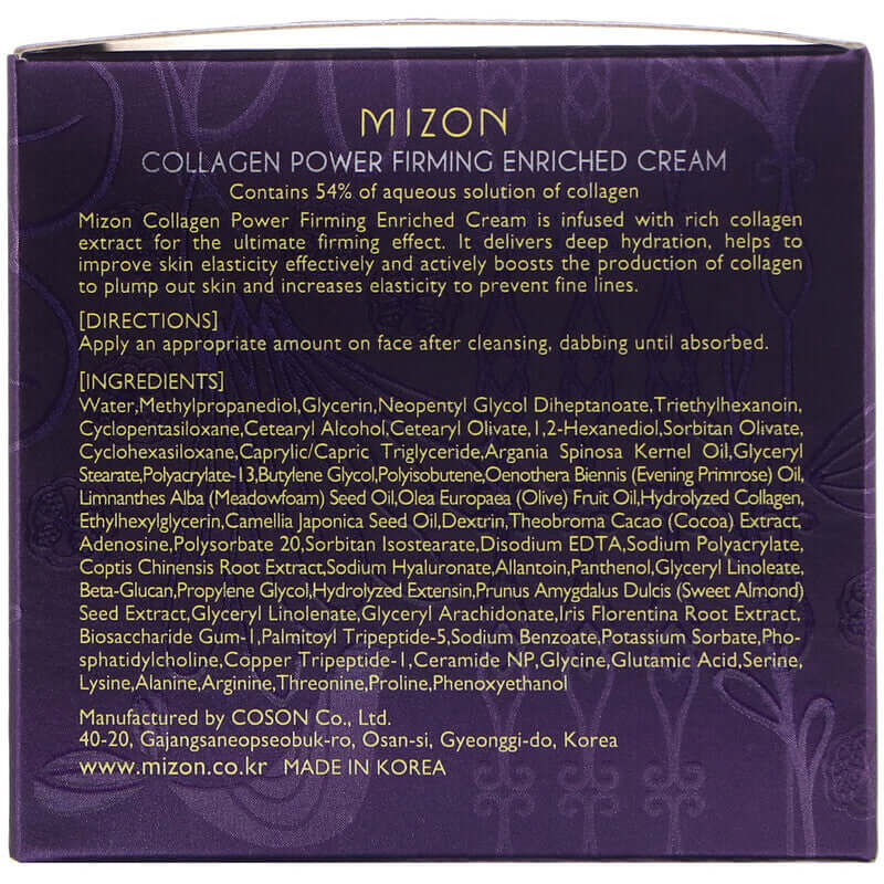 Mizon Collagen Power Firming Enriched Cream on ravitseva kasvovoide, joka tarjoaa syväkosteutusta ja kiinteytystä ikääntyvälle iholle. Sopii kaikille ihotyypeille.
