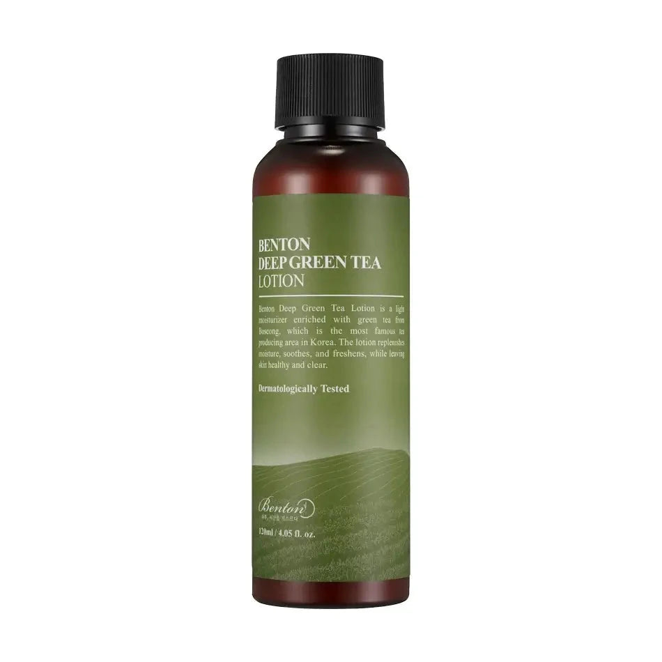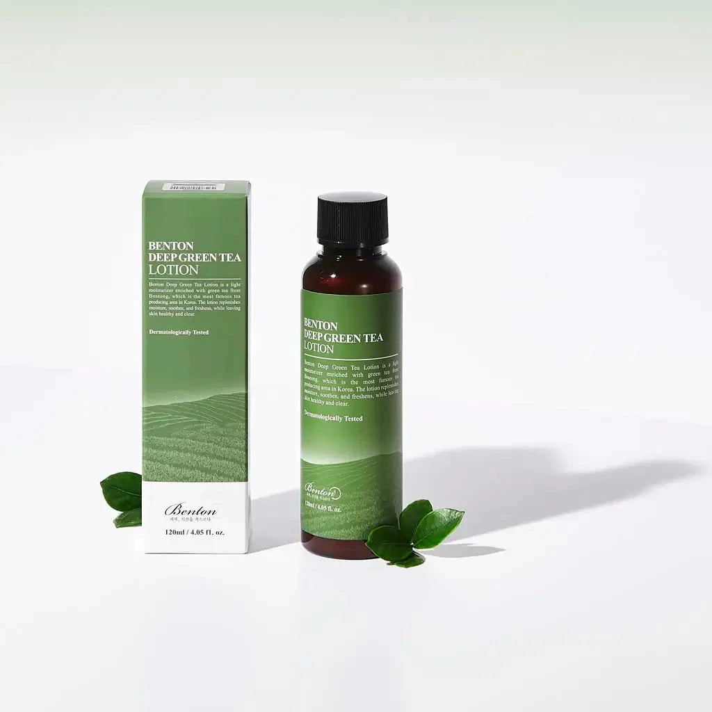 Benton Deep Green Tea Lotion tarjoaa tehokasta kosteutusta ja rauhoitusta jokapäiväiseen ihonhoitoon. Kiinanteepensaan hydrolaatin ja vihreän teen ainutlaatuisen uute-yhdistelmän ansiosta l emulsiomainen koostumus kosteuttaa, virkistää ja rauhoittaa ihoa sekä vähentää punoitusta ja ärsytystä. Tuote imeytyy nopeasti jättämättä rasvaista pintaa ja sopii täydellisesti meikin alle.