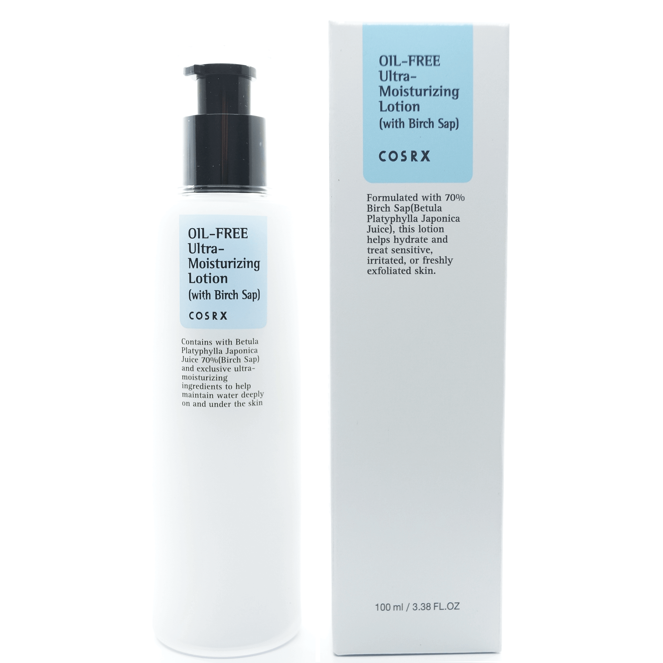 COSRX Oil Free Ultra Moisturizing Lotion, joka sisältää 70 % koivunmahlaa, on tarkoitettu sekaiholle, rasvoittuvalle ja herkälle iholle. Tämä öljytön voide kosteuttaa syvältä, rauhoittaa ihoa ja omaa antibakteerisia ominaisuuksia. Sen kevyt koostumus imeytyy nopeasti jättämättä rasvaista tai tahmeaa tunnetta. Tuote parantaa ihon pH-tasapainoa, vähentää kuivuutta ja hilseilyä, säätelee talineritystä, poistaa tulehduksia ja punoitusta, torjuu aknea ja lisää ihon kimmoisuutta.