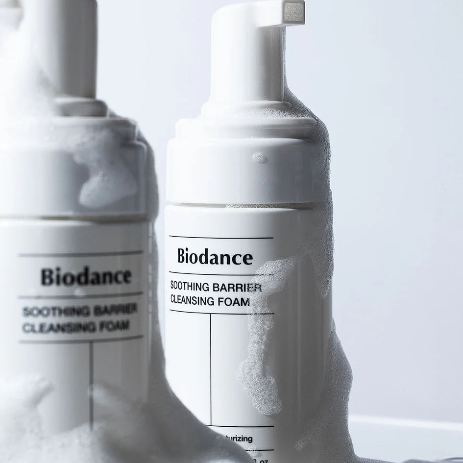 Biodance Soothing Barrier Cleansing Foam on hellävarainen puhdistusvaahto, joka poistaa epäpuhtaudet jättämättä iholle kiristävää tai kuivaa tunnetta. Sen kosteuttava koostumus rauhoittaa ihoa ja ehkäisee ärsytystä. Puhdistusvaahto sisältää pantenolia, joka edistää ihon uudistumista ja lievittää ärsytystä. Kasvipohjaisten sokereiden kompleksi kosteuttaa tehokkaasti ja parantaa ihon kimmoisuutta, kun taas vihreän teen uute rauhoittaa ja toimii tulehduksia vastaan.