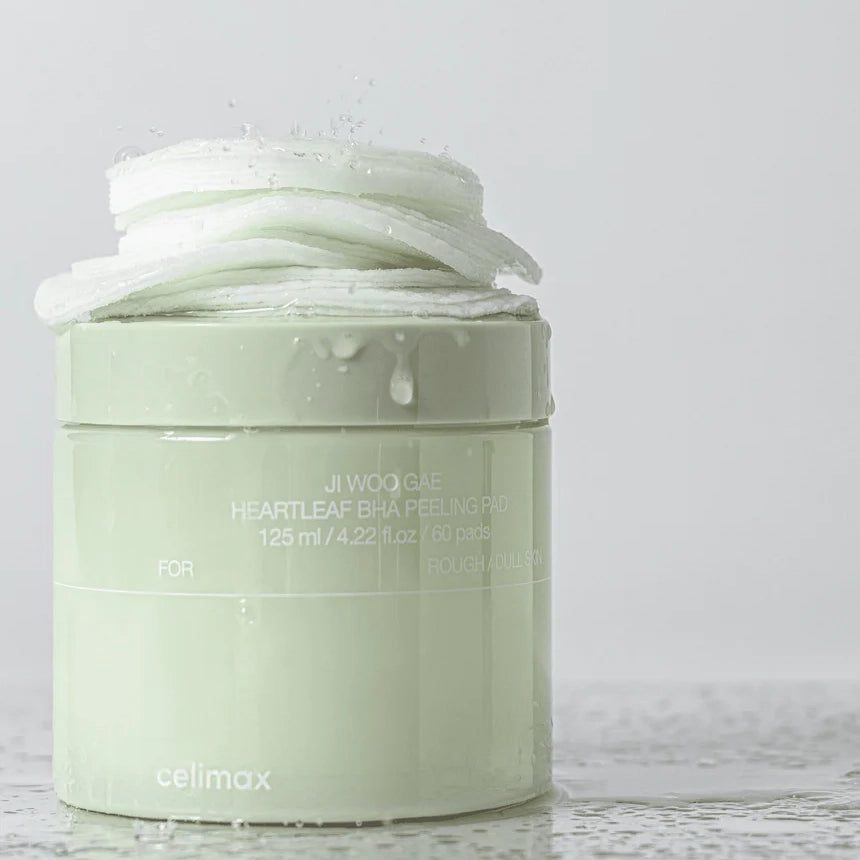 Celimax Ji Woo Gae Heartleaf BHA Peeling Pad -kuorintalaput puhdistavat ihoa tehokkaasti, poistavat kiiltoa, torjuvat tulehduksia ja mustapäitä sekä virkistävät ja kirkastavat ihon sävyä.