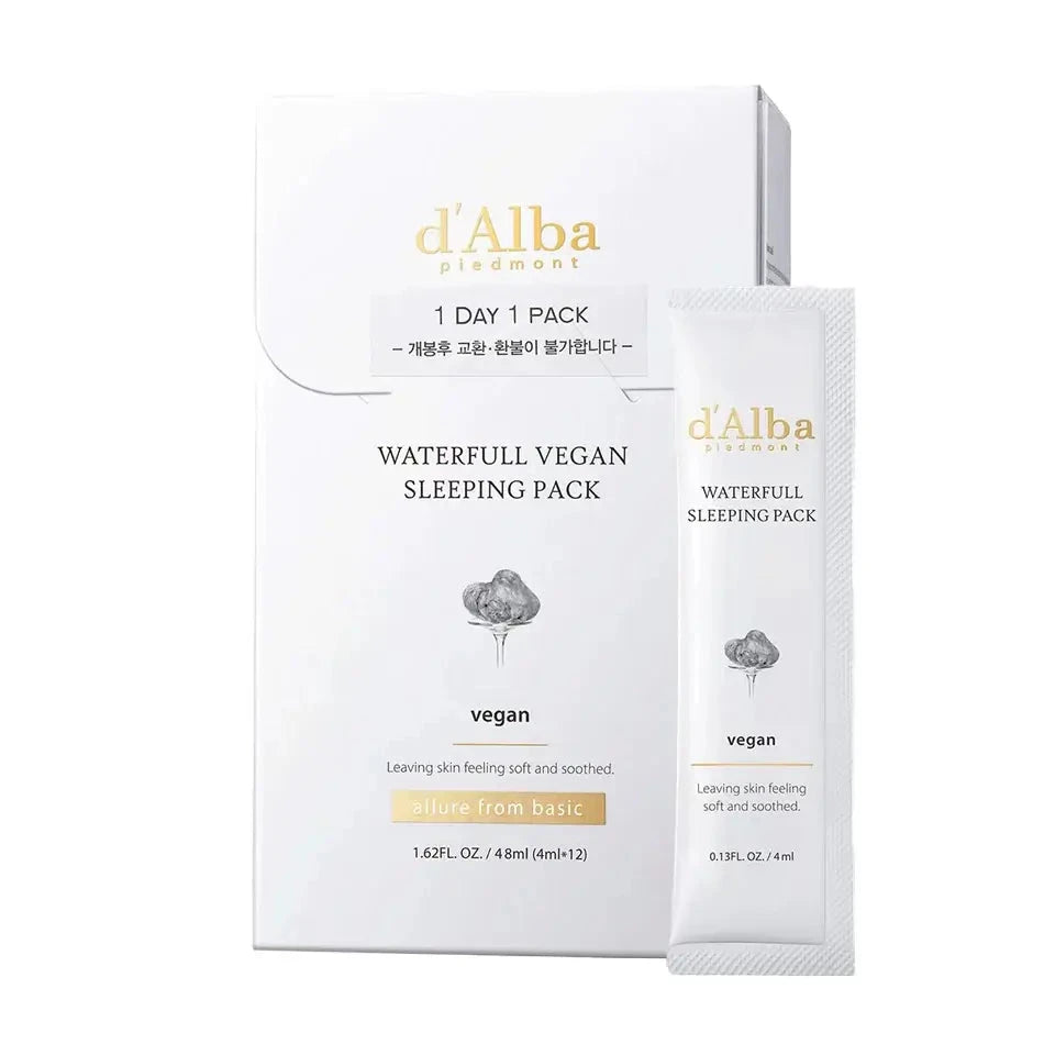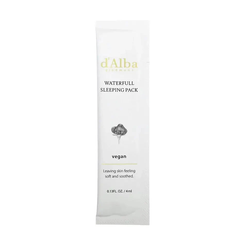 d'Alba Waterfull Vegan Sleeping Pack on yönaamio, joka on rikastettu hyaluronihapolla intensiivistä kosteutusta varten unen aikana. Italialainen valkotryffeli, E-vitamiini ja luonnollisten öljyjen kompleksi ravitsevat ihoa syvältä, palauttavat sen kimmoisuuden, tasoittavat ihon rakennetta ja vahvistavat sitä. Sopii kaikille ihotyypeille, myös herkälle iholle.