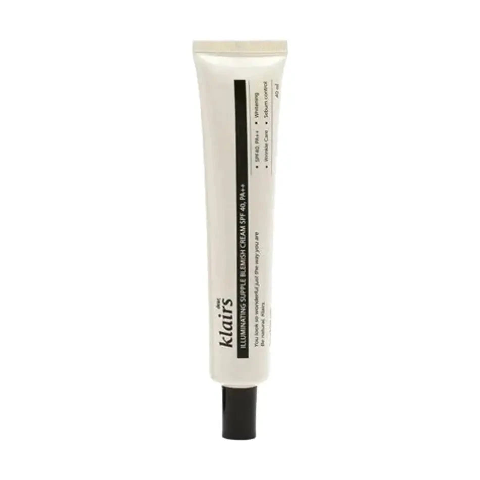 Dear Klairs Illuminating Supple Blemish Cream SPF40 PA++ tasoittaa ihonsävyä, kosteuttaa ja antaa heleän lopputuloksen, samalla suojaten ihoa auringon haitallisilta säteiltä.