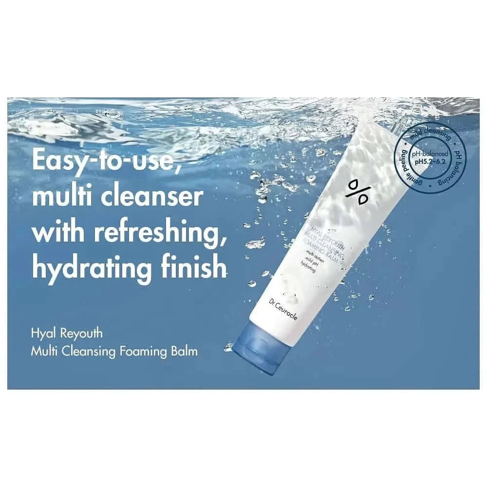 Dr.Ceuracle Hyal Reyouth Multi Cleansing Foaming Balm on kosteuttava ja vaahtoava puhdistusbalmi, joka poistaa meikin, aurinkovoiteen ja epäpuhtaudet tehokkaasti yhdellä vaiheella.