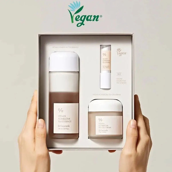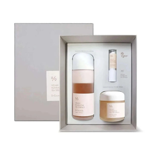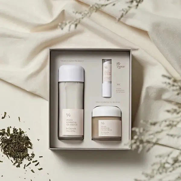 Dr.Ceuracle Vegan Kombucha Tea Special Set on ylellinen ihonhoitosetti, joka palauttaa ihon tasapainon ja kosteuden kombuchan, probioottien ja vihreän teen avulla.