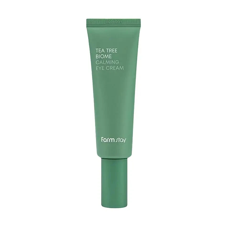 FarmStay Tea Tree Biome Calming Eye Cream on silmänympärysvoide, joka kosteuttaa, kiinteyttää ja rauhoittaa herkkää ihoa teepuu-uutteen avulla.