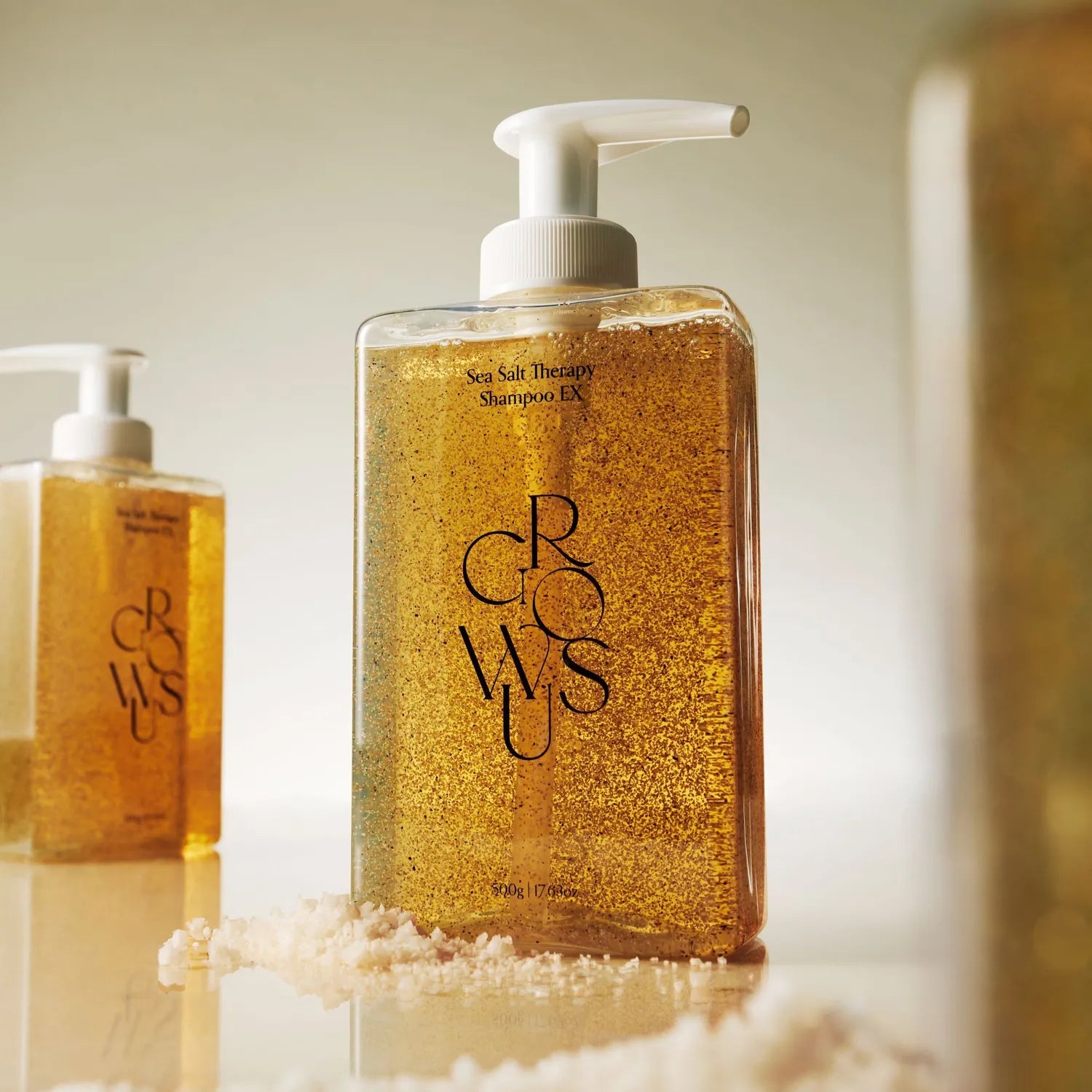 Growus Sea Salt Therapy Shampoo — kuoriva shampoo, joka poistaa epäpuhtaudet, tasapainottaa talintuotantoa ja jättää hiuspohjan raikkaaksi ja puhtaaksi.