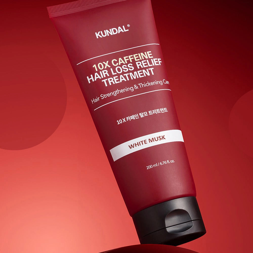 Kundal 10X Caffeine Strengthening Treatment White Musk on täyteläinen hiusten ja hiuspohjan hoitotuote, joka auttaa vähentämään katkeilua ja tekee hiuksista vahvemman ja tiheämmän tuntuiset.