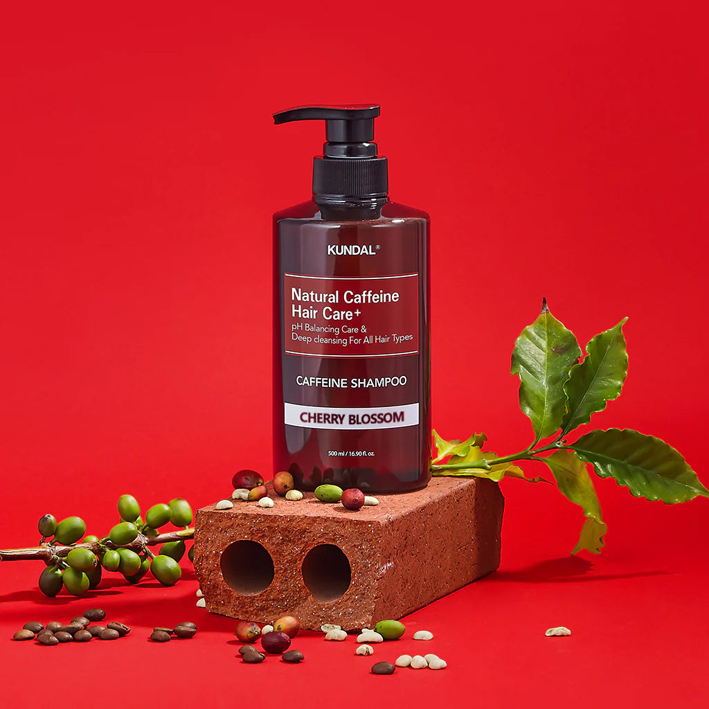 KUNDAL Caffeine Shampoo Cherry Blossom on suunniteltu hiusten ja päänahan hellävaraiseen mutta syvälliseen puhdistukseen. Kofeiini stimuloi hiusten kasvua, vahvistaa juuria ja auttaa ehkäisemään hiustenlähtöä. Kasviuutteet säätelevät talin tuotantoa ja ylläpitävät päänahan tasapainoa. Kevyt kirsikankukkien tuoksu antaa hiuksille raikkaan ja miellyttävän sävyn, tehden pesukokemuksesta nautittavan.