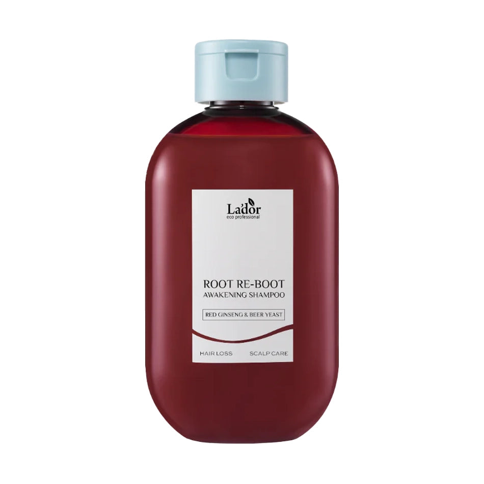 Lador Root Re-Boot Awakening Shampoo Red Ginseng & Beer Yeast tehostaa hiusten kasvua, vahvistaa hiusjuuria ja puhdistaa hiuspohjan tehokkaasti.