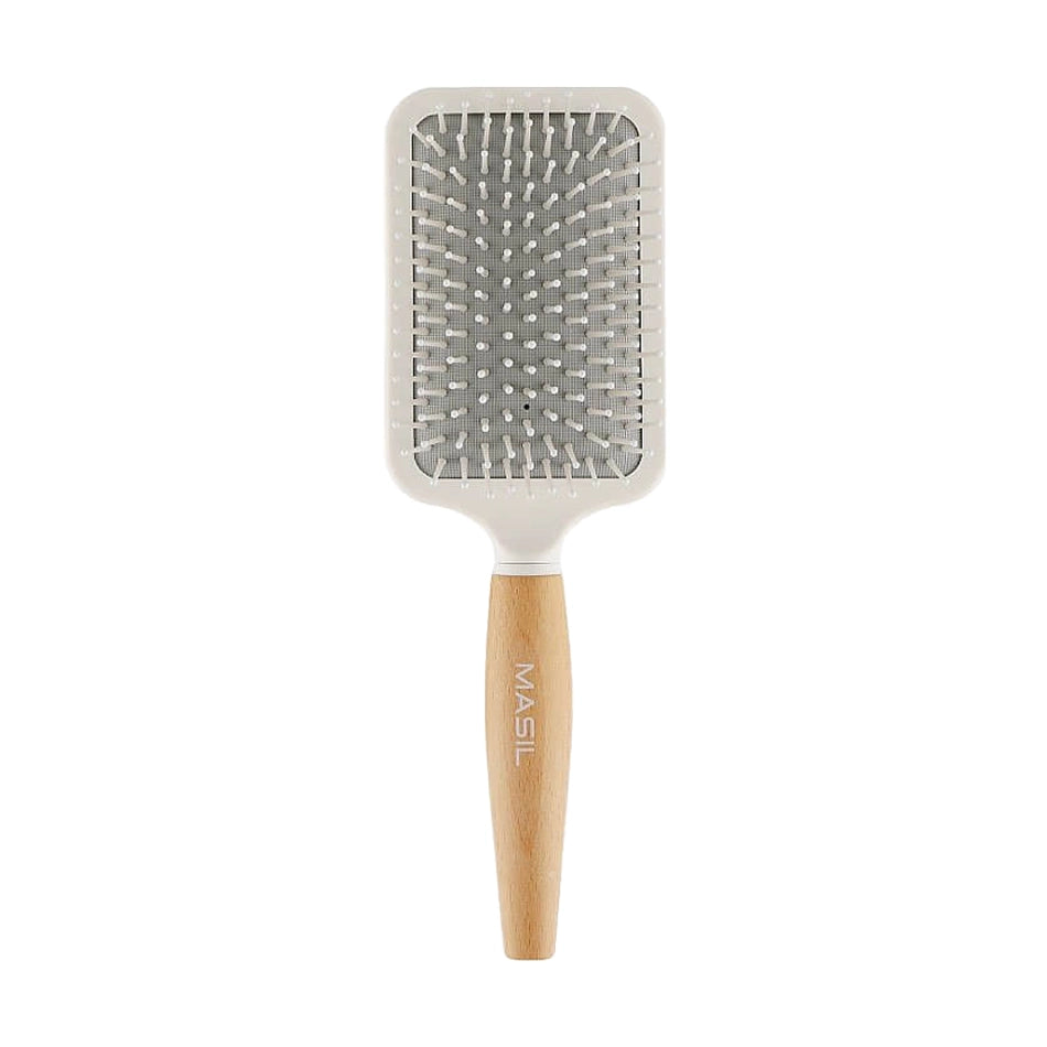 Kestävä ja ergonominen Masil Wooden Paddle Brush on suunniteltu päivittäiseen hiustenhoitoon. Laaja harjaosa silottaa ja selvittää hiukset ilman vetoa tai katkeilua. Zelkova-puusta valmistettu kahva tuntuu mukavalta kädessä, ja nailonharjakset hierovat hellästi päänahkaa. Harja parantaa mikroverenkiertoa, ehkäisee hiusten sähköisyyttä ja tekee niistä pehmeämmät ja kiiltävämmät. Antistaattinen rakenne ja ilmakanavat varmistavat miellyttävän, luonnollisen harjauskokemuksen.