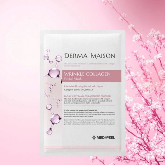 Medi-Peel Derma Maison Wrinkle Collagen Facial Mask kosteuttaa, silottaa ja kiinteyttää ihoa, jättäen sen kimmoisaksi ja heleäksi.