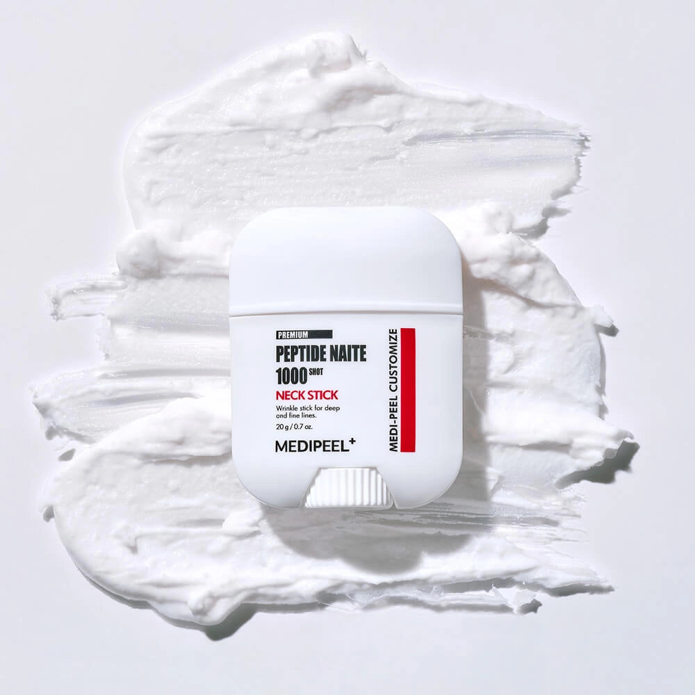 - Levitä Medi-Peel Premium Peptide Naite 1000 Shot Neck Stick puhtaalle kaulan ja dekolteen iholle hoitorutiinin viimeisessä vaiheessa.