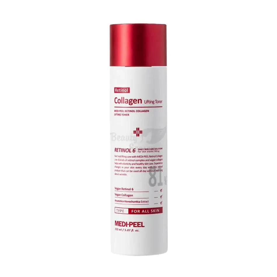 - Sopiiko Medi-Peel Retinol Collagen Lifting Toner herkälle iholle? Retinolia sisältävä koostumus voi aiheuttaa herkkyyttä, joten suosittelemme testaamaan ensin pienellä alueella.