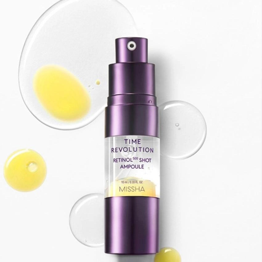 MISSHA Time Revolution Retinol 500 Shot Ampoule on intensiivinen retinoliseerumi, joka auttaa silottamaan ryppyjä, tasoittamaan ihon tekstuuria ja palauttamaan nuorekkaan hehkun.