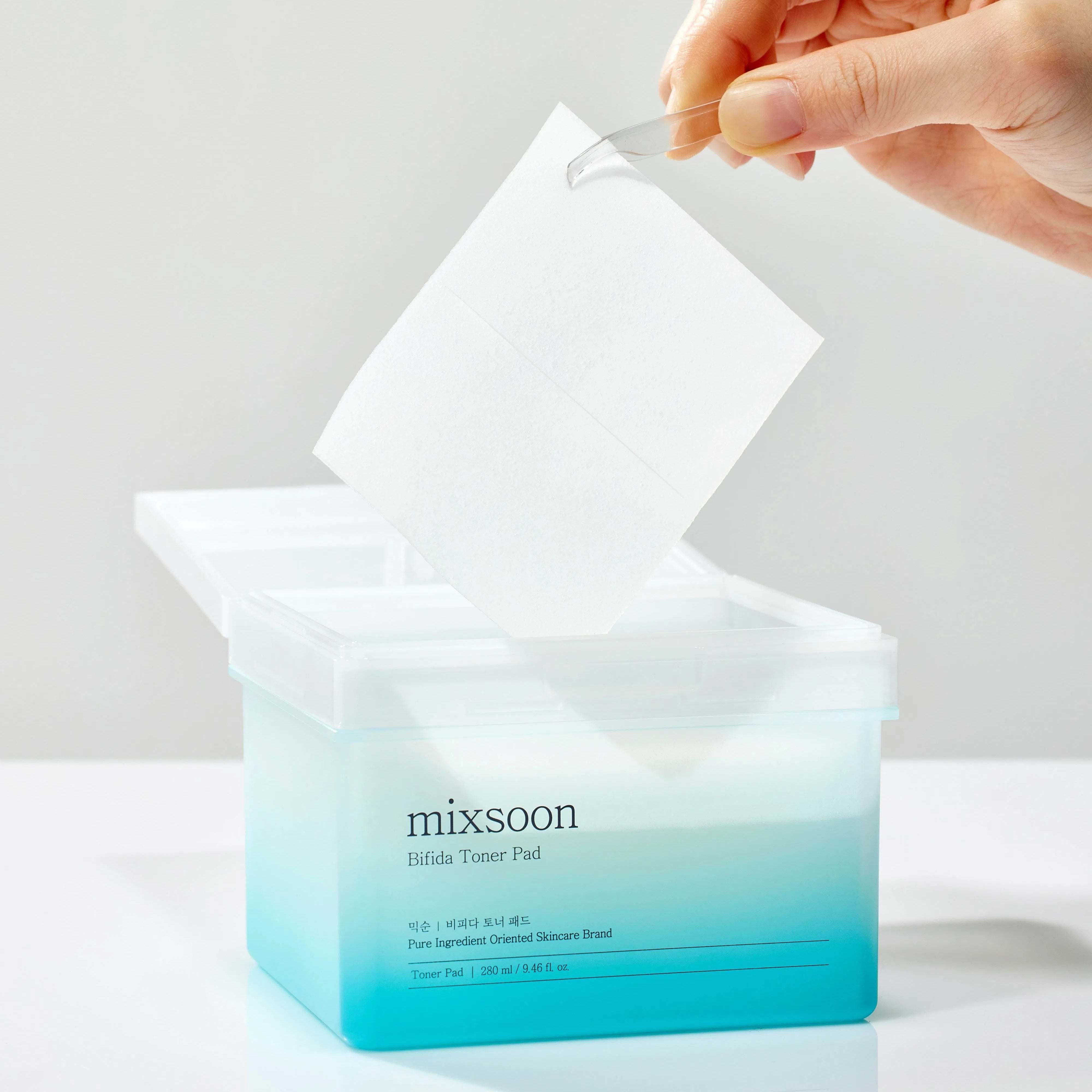 - Pyyhi puhdistettu iho varovasti Mixsoon Bifida Toner Pad -tyynyllä, välttäen silmänympärysihoa.