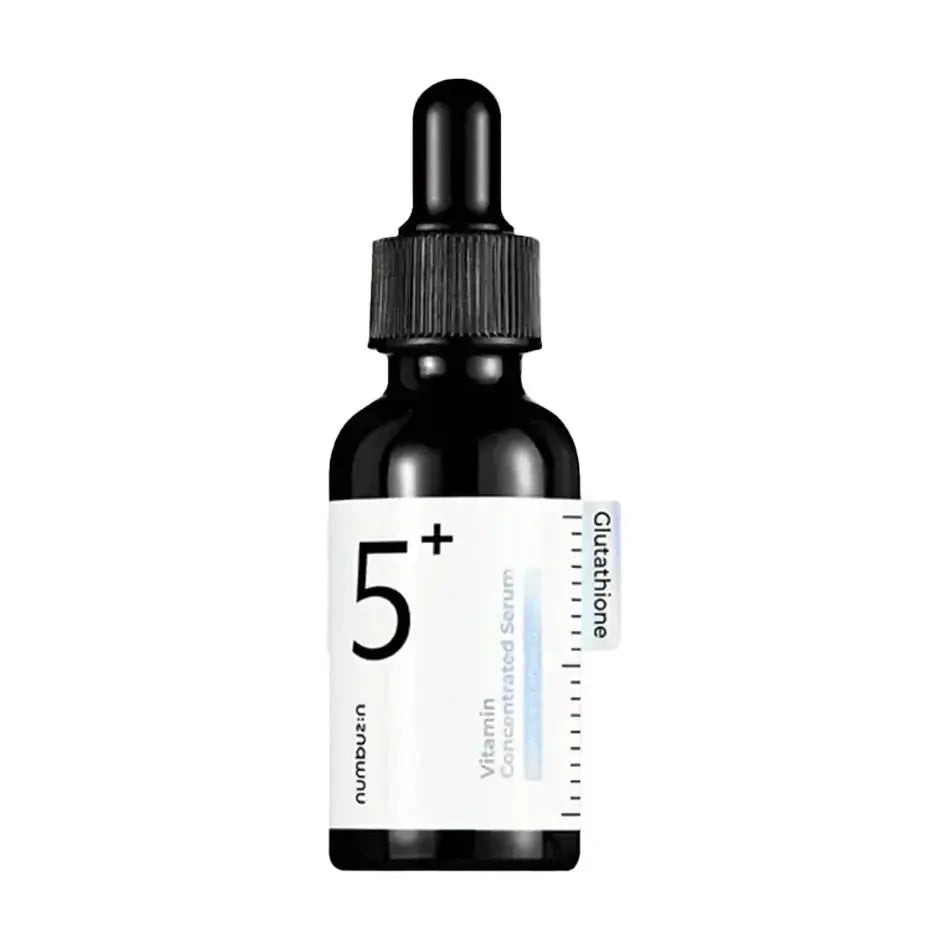 Numbuzin No.5 Vitamin Concentrated Serum on tehokas seerumi, joka torjuu ihon pigmentaatiota ja epätasaista sävyä. Seerumi kirkastaa ihoa, vähentää punoitusta, tasoittaa ihon sävyä ja auttaa ehkäisemään aknen jälkiä ja pigmenttiläiskiä. Sen aktiiviset ainesosat — C-vitamiini, glutationi, niasiiniamidi, alfa-arbutiini, traneksaamihappo ja koentsyymi Q10 — tarjoavat voimakasta kirkastavaa ja antioksidanttista vaikutusta.