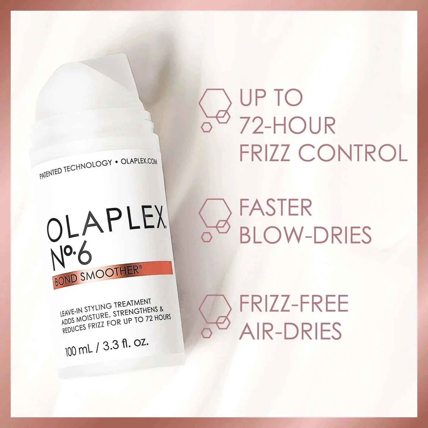 Olaplex No.6 Bond Smoother on hiuksia uudistava hoitovoide, joka auttaa korjaamaan ja vahvistamaan kemiallisista käsittelyistä, lämpömuotoilusta ja muista vaurioista kärsineitä hiuksia. Sen koostumus perustuu Olaplex-teknologiaan, joka vahvistaa hiusten sisäisiä rakenteita ja palauttaa niiden terveen kiillon.
