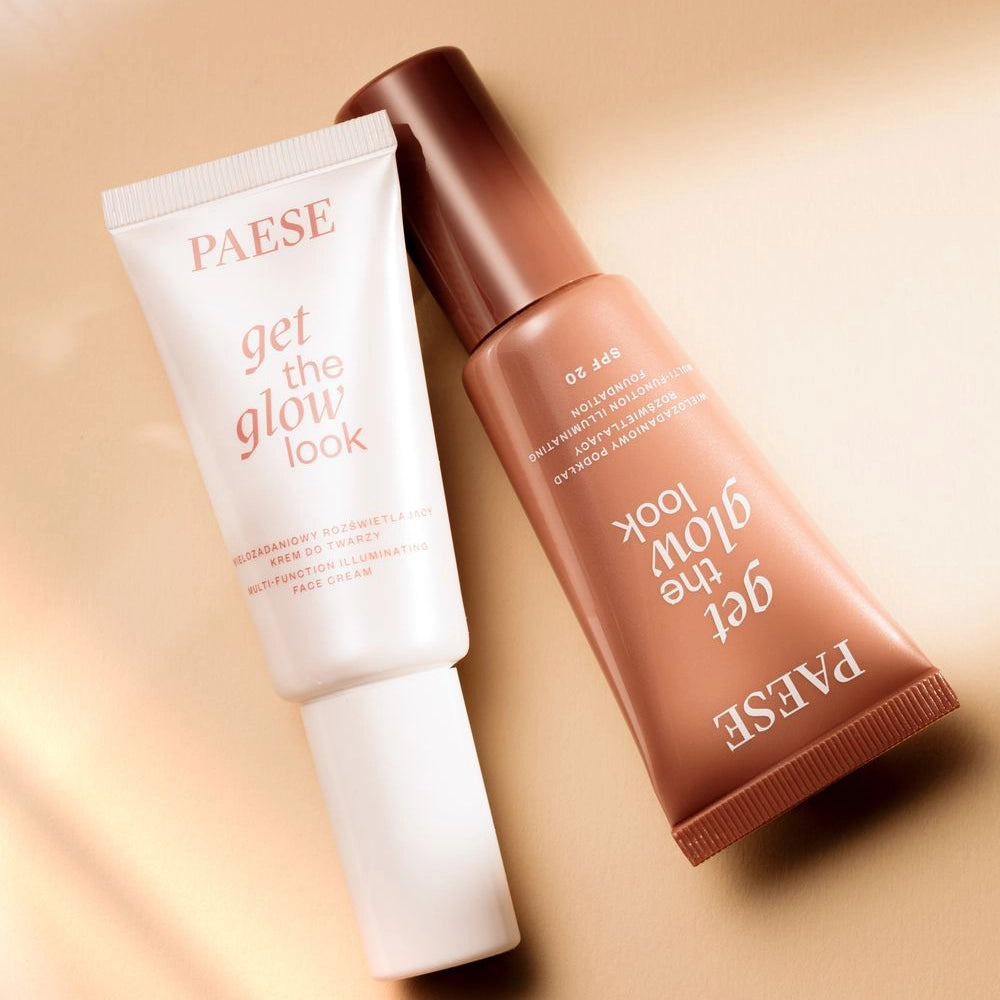 Paese Get The Glow Look Multi-Function Illuminating Face Cream on kevyt ja monikäyttöinen kasvovoide, joka tuo iholle luonnollista hehkua. Se toimii sekä itsenäisenä kosteuttajana että meikinpohjustajana, joka pidentää meikin kestoa. Voide tasoittaa ihon sävyä, kirkastaa ja pehmentää ihoa valoa heijastavien pigmenttien ansiosta. Imeytyy nopeasti eikä jätä tahmeaa tunnetta.