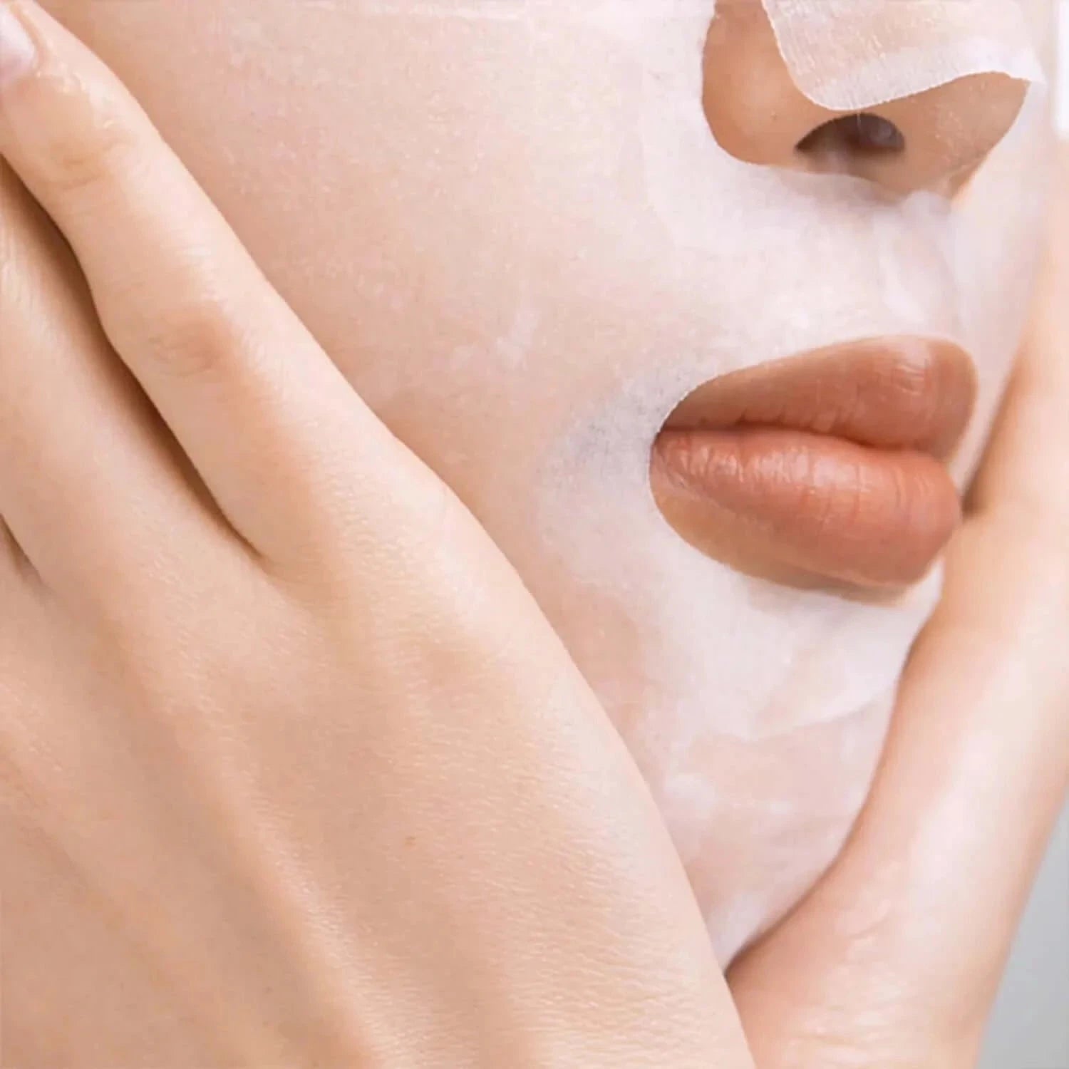 Aseta naamio kasvoille ihonhoidon viimeisenä vaiheena ja anna vaikuttaa 20 minuuttia. Poista kangas ja taputtele jäljelle jäänyt essence ihoon sormenpäillä.