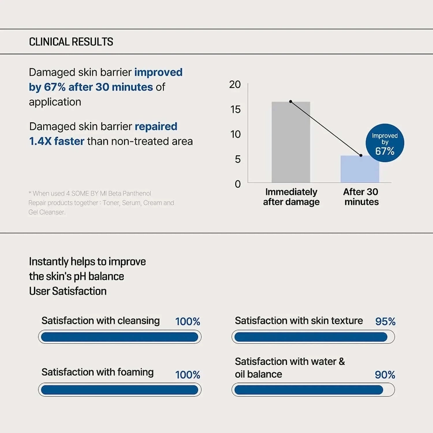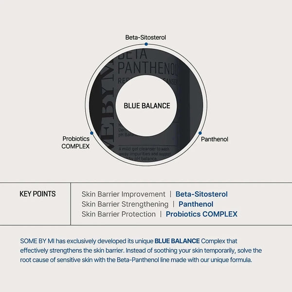 Some By Mi Beta Panthenol Repair Gel Cleanser on tehokas puhdistustuote, joka poistaa lian ja epäpuhtaudet jättäen iholle rauhoittavan ja kosteuttavan vaikutuksen. Koostumus on rikastettu SOME BY MI:n patentoimalla Beta-Panthenol™-yhdisteellä (D-pantenolin ja beeta-sitosterolin seos), joka vahvistaa ihon suojakerrosta ja rauhoittaa ihoa.