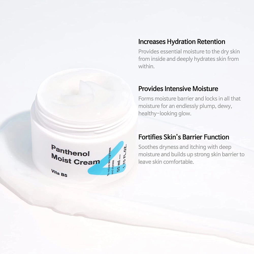 TIAM Panthenol Moist Cream on intensiivisesti kosteuttava voide, joka poistaa kuivuuden ja kireyden tunteen, sitoo kosteuden ihon syvempiin kerroksiin ja tukee ihon luonnollista suojakerrosta. Se vahvistaa ihon suojamuuria, rauhoittaa ärsytystä ja punoitusta, edistäen ihon terveen ja kirkkaan ulkonäön säilymistä.