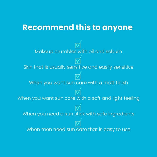 Levitä TOCOBO Cotton Soft Sun Stick SPF50+ PA++++ kasvoille, kaulalle, korville ja muille auringolle alttiille alueille.