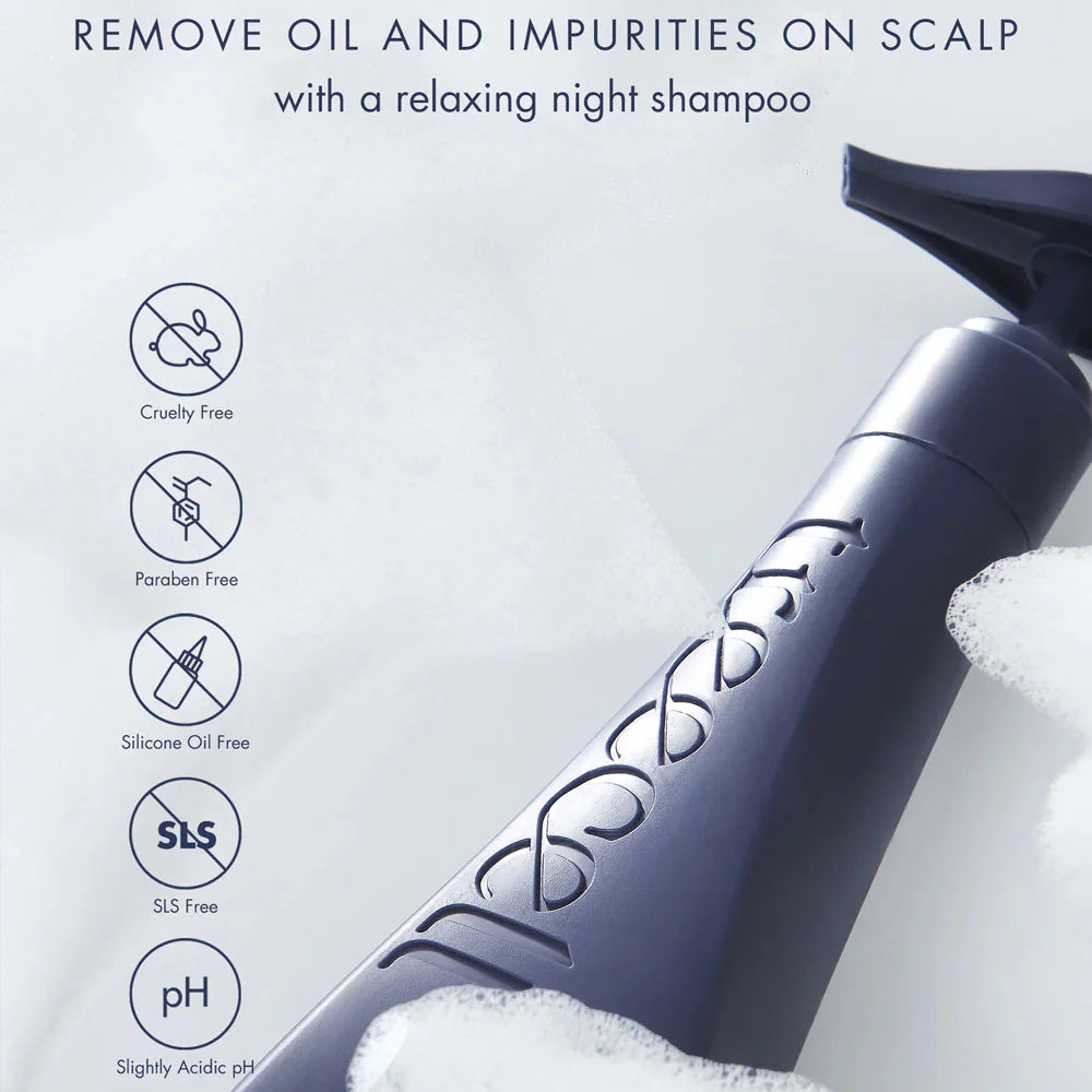 Treecell Night Collagen Shampoo Midnight Forest on yöksi suunniteltu shampoo, joka puhdistaa hiukset ja hiuspohjan syvältä ja edistää niiden palautumista unen aikana. Koostumus sisältää matalamolekyylistä kollageenia, merileväuutteita ja kasvipohjaisia aineosia, jotka vahvistavat hiuksia, vähentävät hiustenlähtöä ja parantavat hiuspohjan kuntoa.