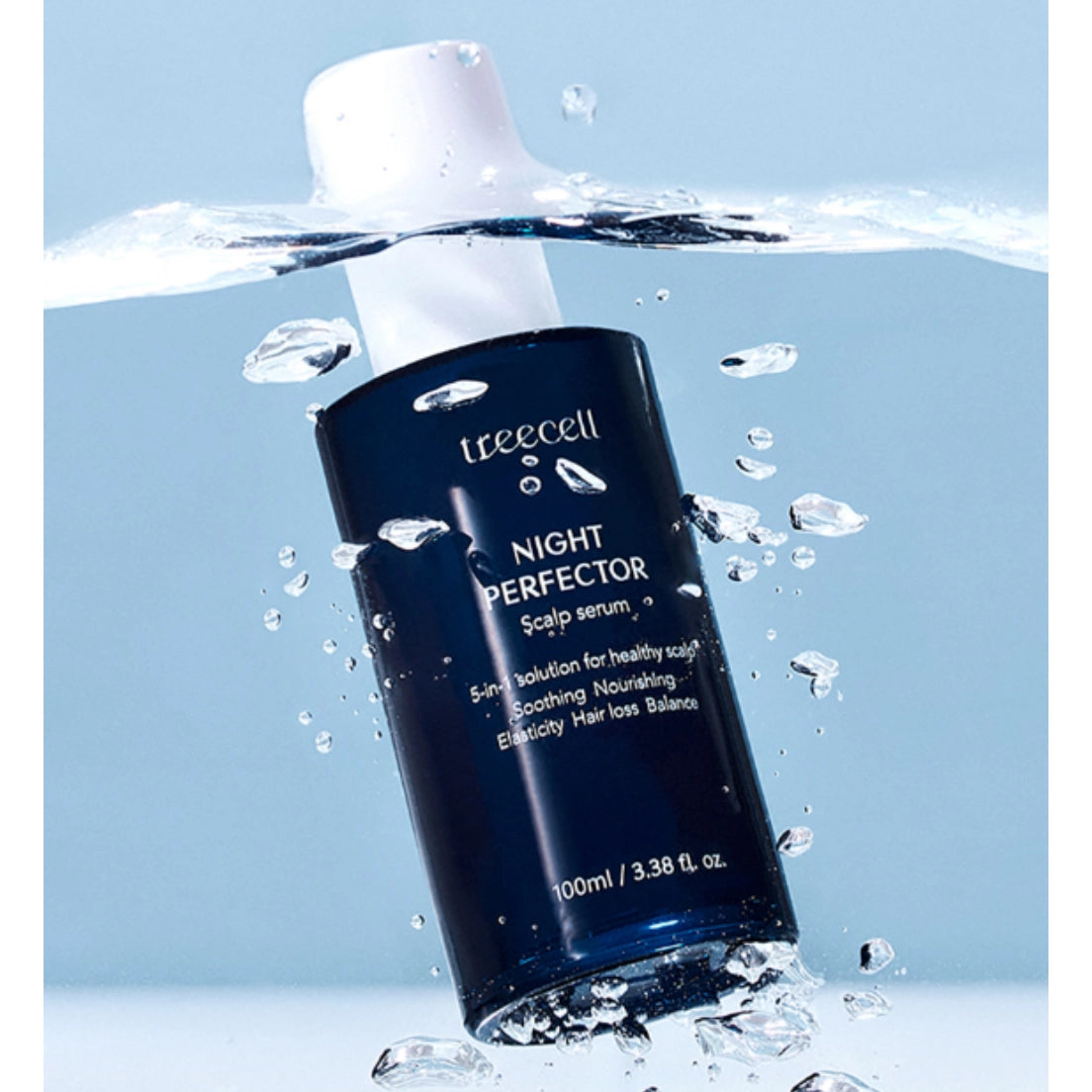 Treecell Night Perfector — hoitava yöseerumi teepuun, kofeiinin ja kollageenin yhdistelmällä, joka rauhoittaa hiuspohjaa, vahvistaa juuria ja parantaa hiusten yleiskuntoa.