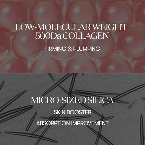 - Kollageeni pehmentää ihoa, parantaa sen rakennetta, kosteuttaa pitkäkestoisesti ja tasoittaa ryppyjä. Käytetty kollageeni on pienimolekyylistä (500 Da).