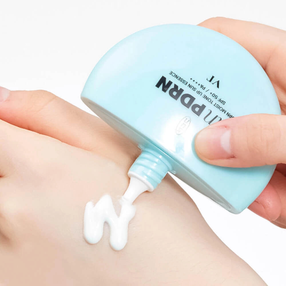 - Levitä VT Cosmetics PDRN Moist Tone Up Sun Essence SPF50+ PA++++ kasvoille ja kaulalle kaikkien aamurutiinin hoitovaiheiden jälkeen, 15–20 minuuttia ennen ulos lähtemistä.