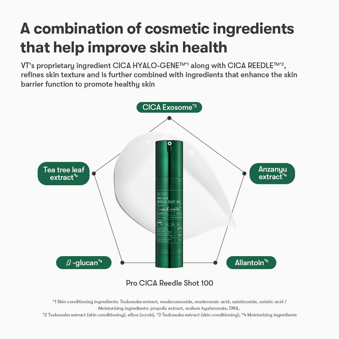 Huomio! VT Cosmetics Pro Cica Reedle Shot 100 -seerumi voi aiheuttaa pistelyä levityksen jälkeen. Ei suositella käytettäväksi heti ihoa vahingoittavien dermatologisten toimenpiteiden jälkeen, kuten kuorinnat, laitehoidot tai injektiot.