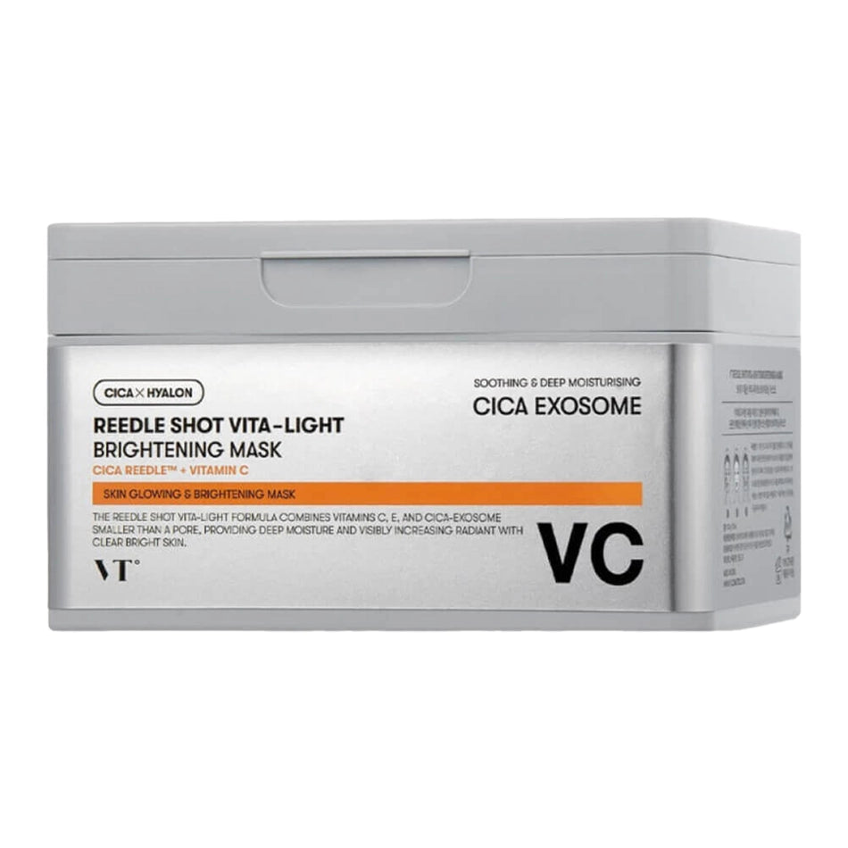 Balinošo auduma masku komplekts ar mikroadatām VT Cosmetics Reedle Shot Vita-Light Brightening Mask dažu minūšu laikā palīdz ādai atgūt veselīgu mirdzumu, vienmērīgu toni, kā arī atsvaidzina to un piešķir tonusu. Piesātina ar vērtīgiem vitamīniem, kas nepieciešami epidermas veselībai, kā arī nostiprina ādas aizsargfunkcijas un novērš mitruma zaudēšanu. Novērš blāvumu un neveselīgu ādas toni, uzlabo sejas krāsu un maigi balina, kā arī palīdz cīņā ar nevēlamajiem pigmentācijas plankumiem.